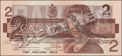 1986 Birds $2 Note - Printing on the Wrong Side Banknotes go through several stages of printing. Between each stage, sheets are fed from one printing press to another. This example is one where the intaglio printing (the raised ink) was applied to the wrong side of the note, which means that the sheet of notes was fed into the printing process upside down at this particular stage!
